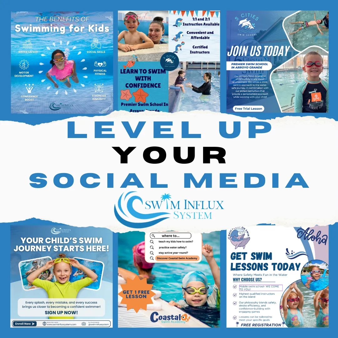 Social Media can be a task for many swim schools. By are partnership with Swim Influx, you can delegate to an industry partner who can take your vision and brand and transform your social media to turn your page into eye popping posts to lead to more organic growth and showcase your school as the go-to swim school in your market!